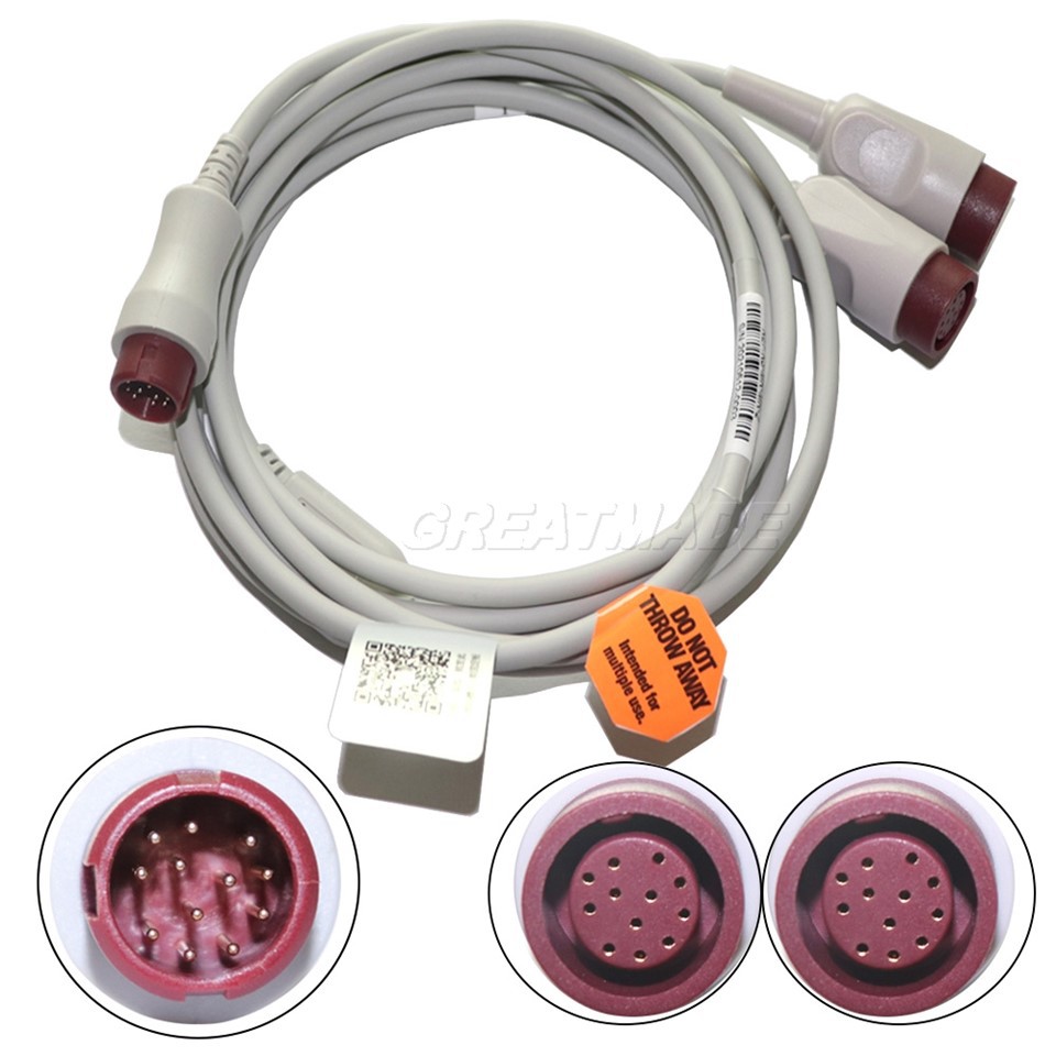 Mindray Compatible Pressure Transducer Interface Cable, 12pin Plug to 12pin Socket*2