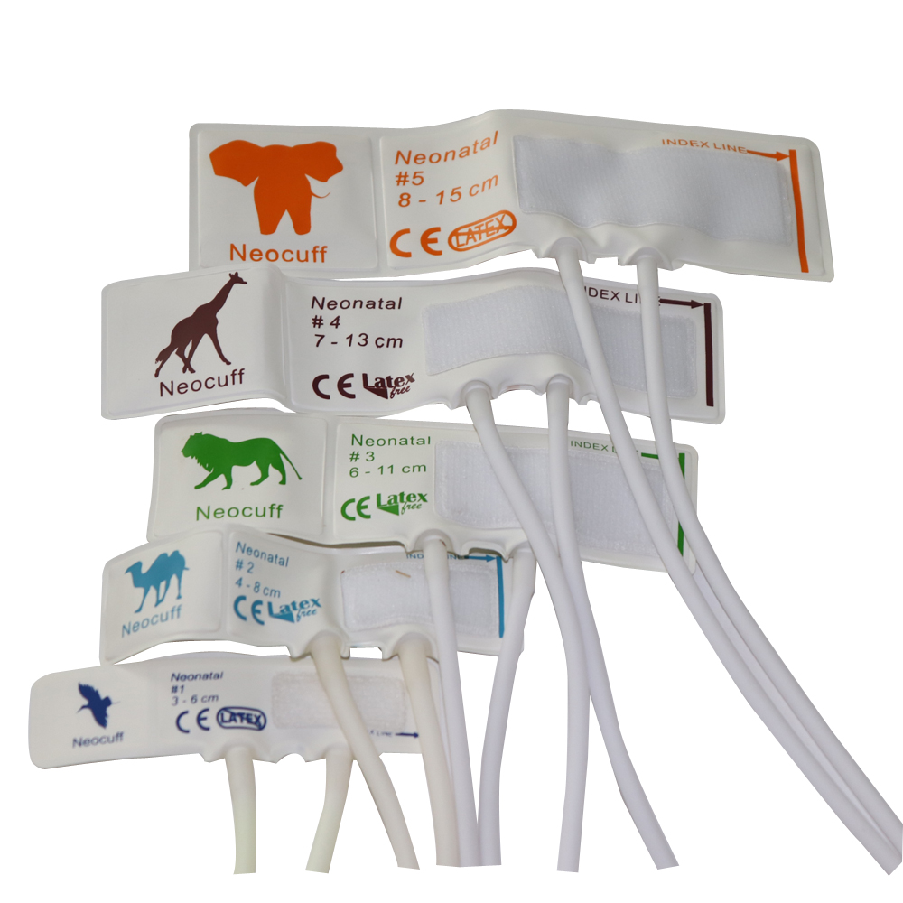 Engångs blodtrycksmanschett för neonat, nibp manschett TPU Material Dubbelrörstorlek 1-5,5 styck / påse utan kontakter