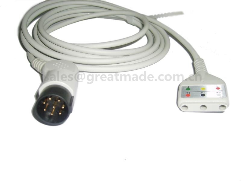 Kompatibel Nihon Kohden EKG-kabel, 8pin, Din Yoke, 3-bly , OEC-6102A