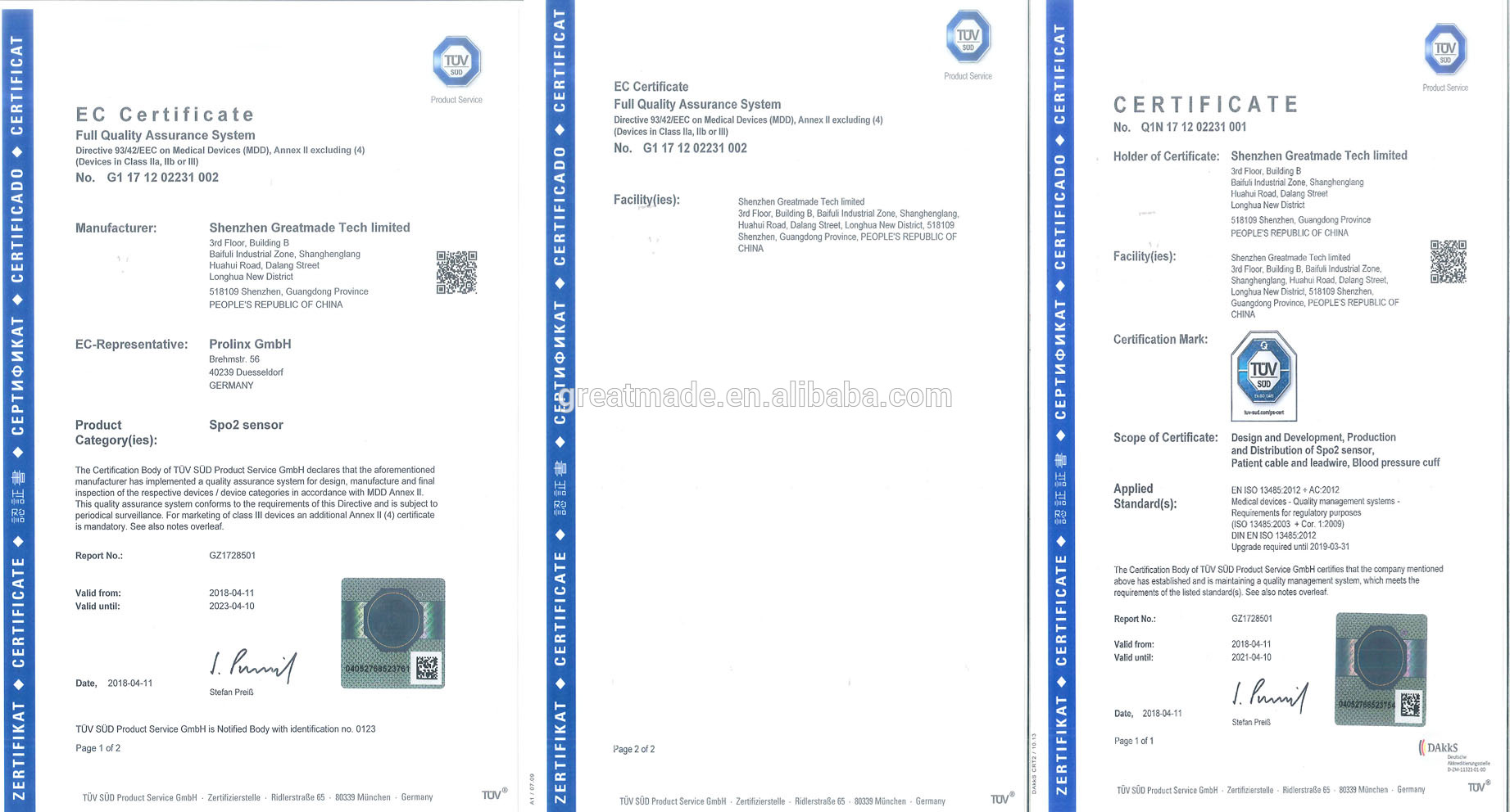 Shenzhen Greatmade Tech LTD Shenzhen Greatmade Tech LTD är en prefessionell tillverkare av medicinsk kabel, som används i stor utsträckning med multiparameter patientmonitor, pulsoximeter, EKG-enhet, blodtrycksmontor, elektrokirurgisk enhet. Vi har 10 års erfarenhet inom detta område. Vi har vår egen fabrik i Shenzhen, Kina, och har komplett tillverkningsapparat och testapparat. Vi bygger också professionellt forsknings- och utvecklingsteam för att tillgodose olika marknadsbehov. Vår överlägsna kvalitet, fördelaktiga priser och tankeväckande service har utökat våra nationella och internationella kunders permanenta support.