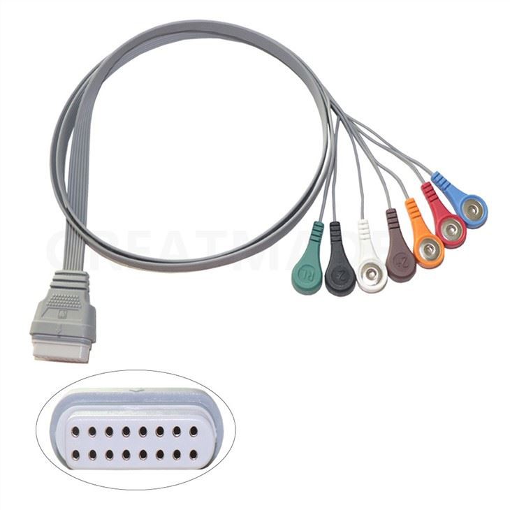 China Medical, kompatibel Edan Se-2003 / Se-2012 16-stift 7 avledningar Snap Type Holter EKG-kabel