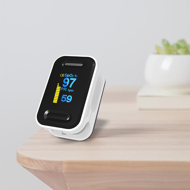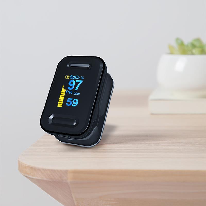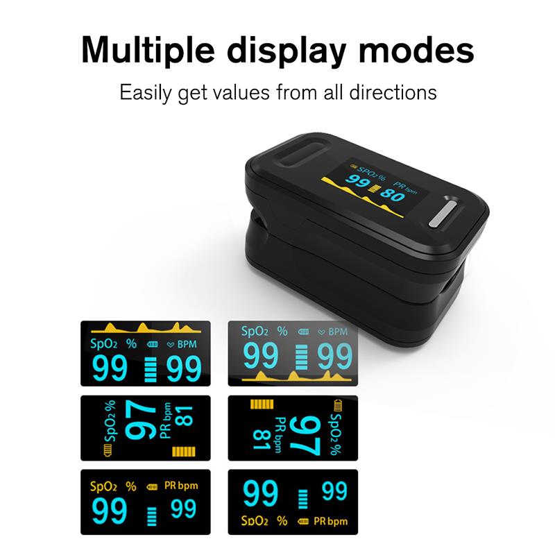Fingerpulsoximetern är ett prisvärt och exakt sätt att kontrollera pulsfrekvensen och blodets syremättnad. Den visar också Plethysmograph-vågen, som garanterar noggrannheten. Självjusterande fingerklämma plus enkel design med en knapp gör det lätt att använda. Levereras med bärväska och nack- / handledsladd. Bekvämt för sjuksköterska och läkare att hänga i halsen. Liten bärbar storlek gör det enkelt att hantera och bära. Lämplig för daglig användning, mät din hälsa när som helst.