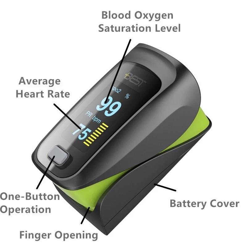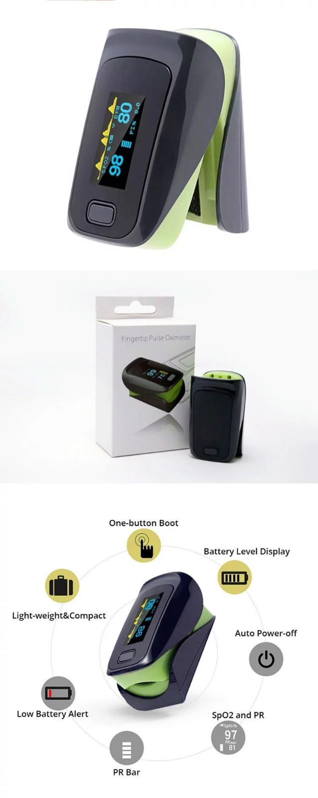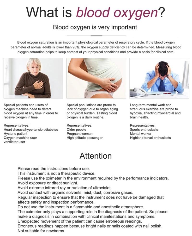 Fingerpulsoximetern är ett prisvärt och exakt sätt att kontrollera pulsfrekvensen och blodets syremättnad. Den visar också Plethysmograph-vågen, som garanterar noggrannheten. Självjusterande fingerklämma plus enkel design med en knapp gör det lätt att använda. Levereras med bärväska och nack- / handledsladd. Bekvämt för sjuksköterska och läkare att hänga i halsen. Liten bärbar storlek gör det enkelt att hantera och bära. Lämplig för daglig användning, mät din hälsa när som helst.